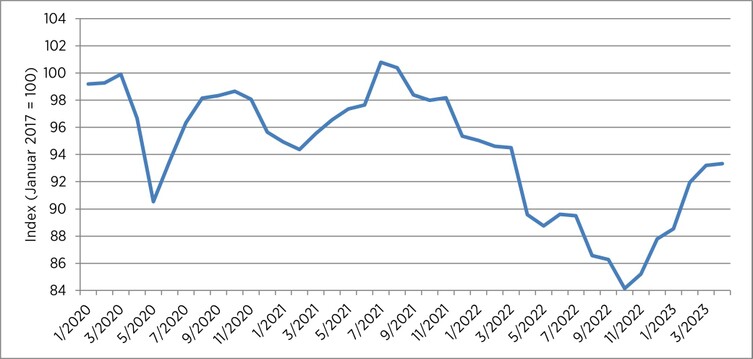 Das Handelsblatt Research Institute hat deshalb seine Konjunkturerwartungen für Deutschland leicht revidiert. Für das laufende Jahr rechnen unsere Experten mit einem Rückgang der gesamtwirtschaftlichen Leistung um 0,5 Prozent und für 2024 mit einem bescheidenen Zuwachs um 0,3 Prozent. Mit den Konjunkturerwartungen für 2024 ist das HRI deutlich pessimistischer als die meisten anderen Experten, die mehrheitlich immerhin rund ein bis 1,5 Prozent Wachstum vorhersagen.